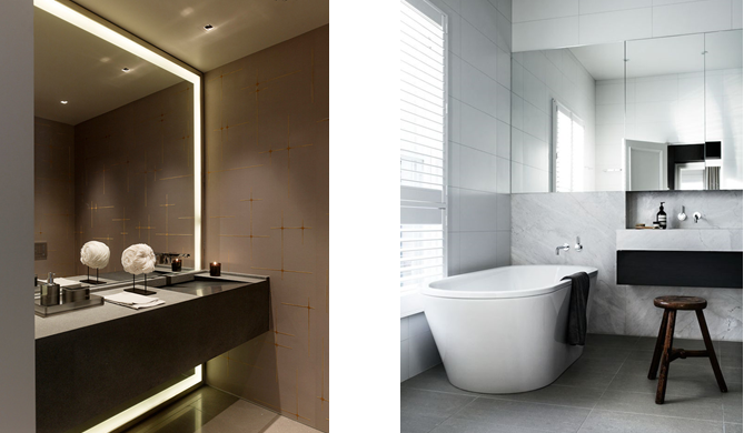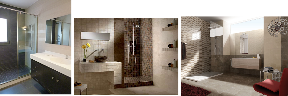 También se pueden crear diferentes ambientes dentro del baño, como por ejemplo haciendo un precorte en la zona de ducha o bañera o lavabo con una cerámica diferente al resto de las paredes.